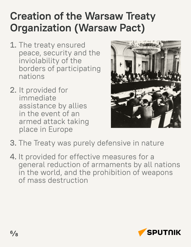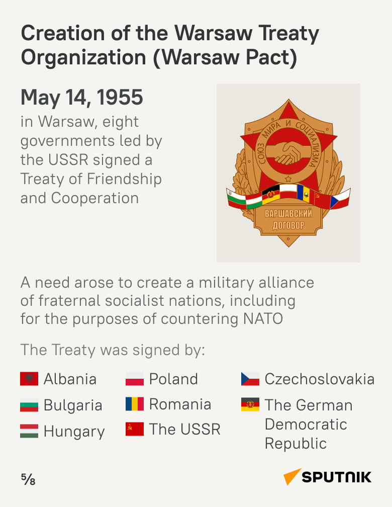 Avant cela, en mars, avril, mai et août 1952, Moscou avait envoyé une série de propositions diplomatiques aux puissances occidentales, collectivement surnommées les « Notes de Staline » , suggérant la réunification de l'Allemagne – dont la division avait été rendue permanente avec la création de l'Union fédérale en mai 1949 et de la République démocratique en octobre 1949, et faire du pays réunifié une grande puissance neutre au cœur même de l'Europe. Les États-Unis et leurs alliés ont rejeté l’idée et l’Allemagne de l’Ouest a finalement été invitée à rejoindre l’OTAN en mai 1955.