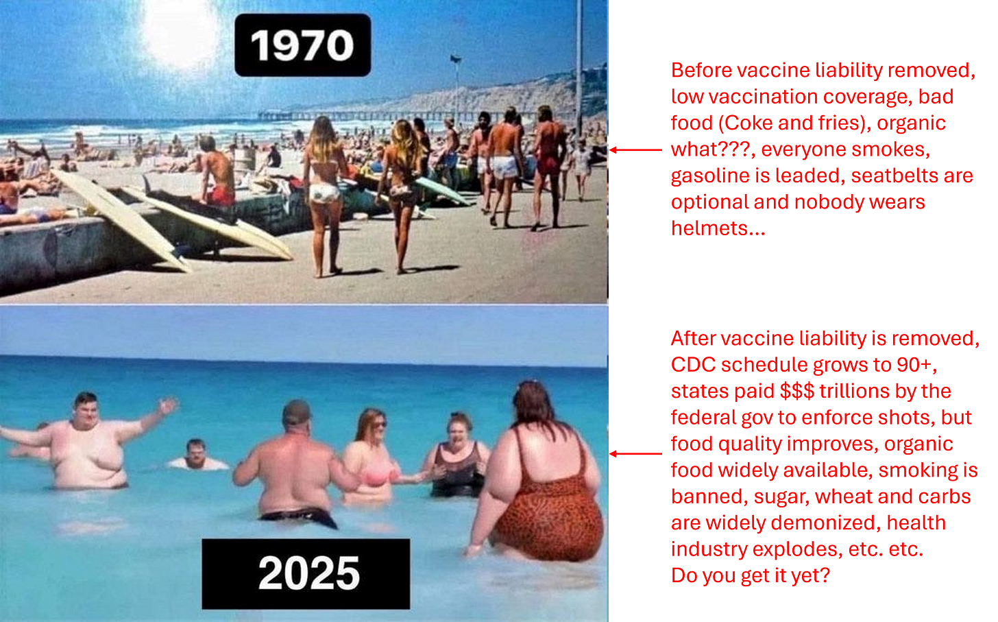 Bottom line: growing sick and poisoned population, where each newborn is poisoned at birth, and even before birth, by vaccines and now by the RSV mAb shot, thanks to MAHA-ACIP, is a net drain on the government’s budget. The population is sick from the start because the government works for the corporations that profit off poisoning the population and making them more dependent on the government. Thus, the circle is complete, and we are circling the drain here…