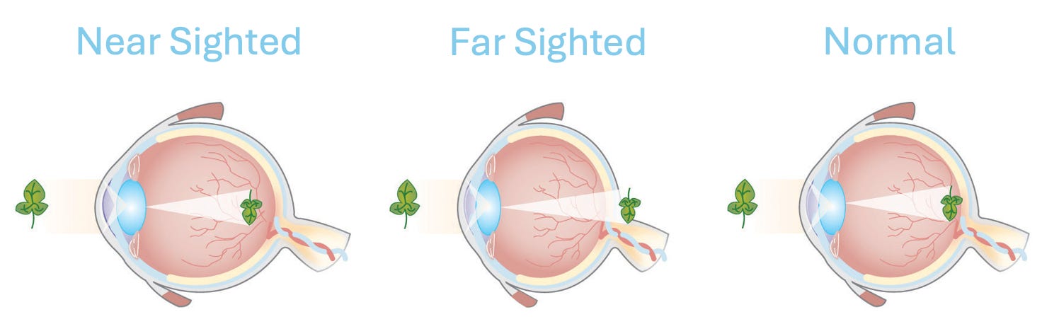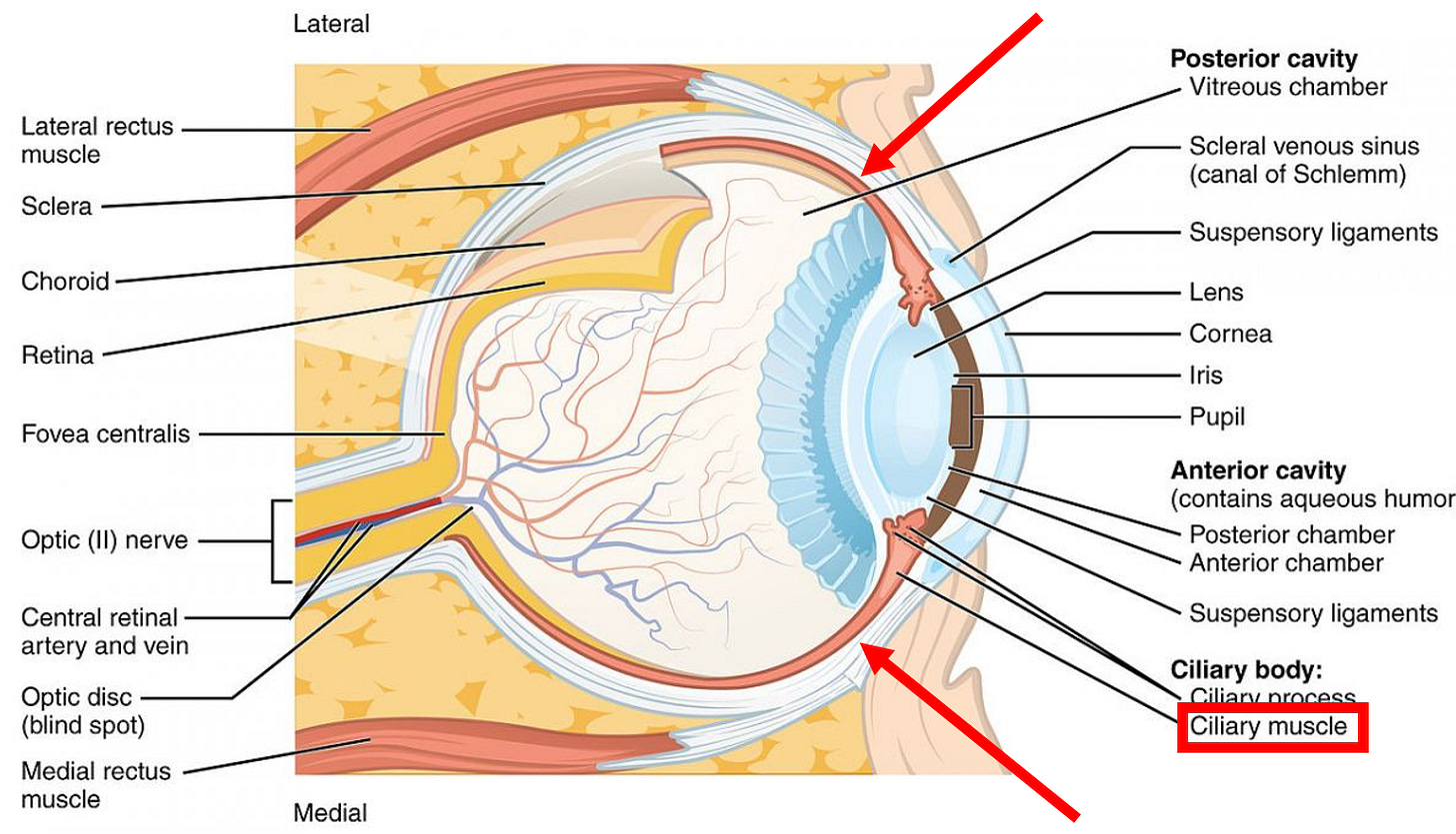 contracté, provoque une myopie (et est proche de la surface de l'œil et
