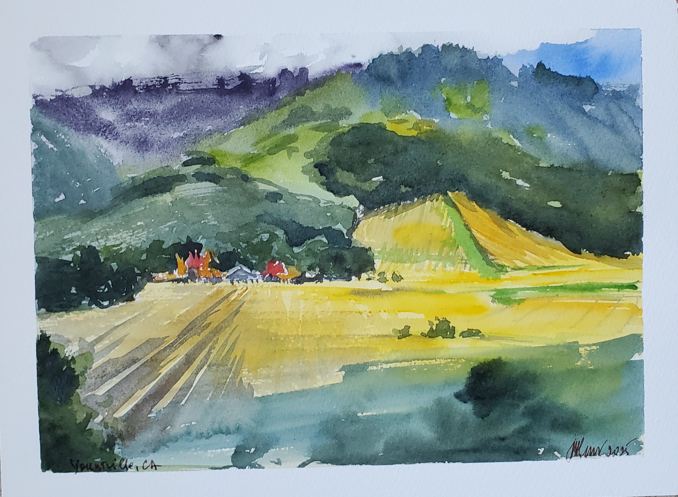 Œuvre du jour : Vignobles jaunes à Yountville, Californie, aquarelle, 9 x 12 pouces.