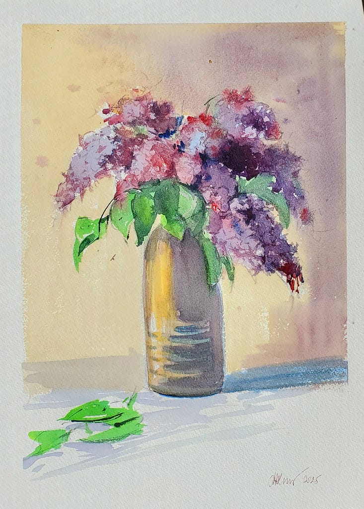 Œuvre du jour : Lilas, aquarelle, 14 x 10 pouces.
