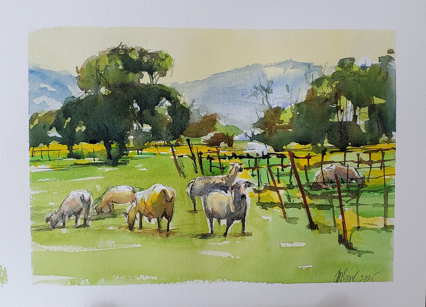Œuvre du jour : Le printemps est de retour ! Aquarelle, 23 x 30 cm. Œuvres disponibles ici .