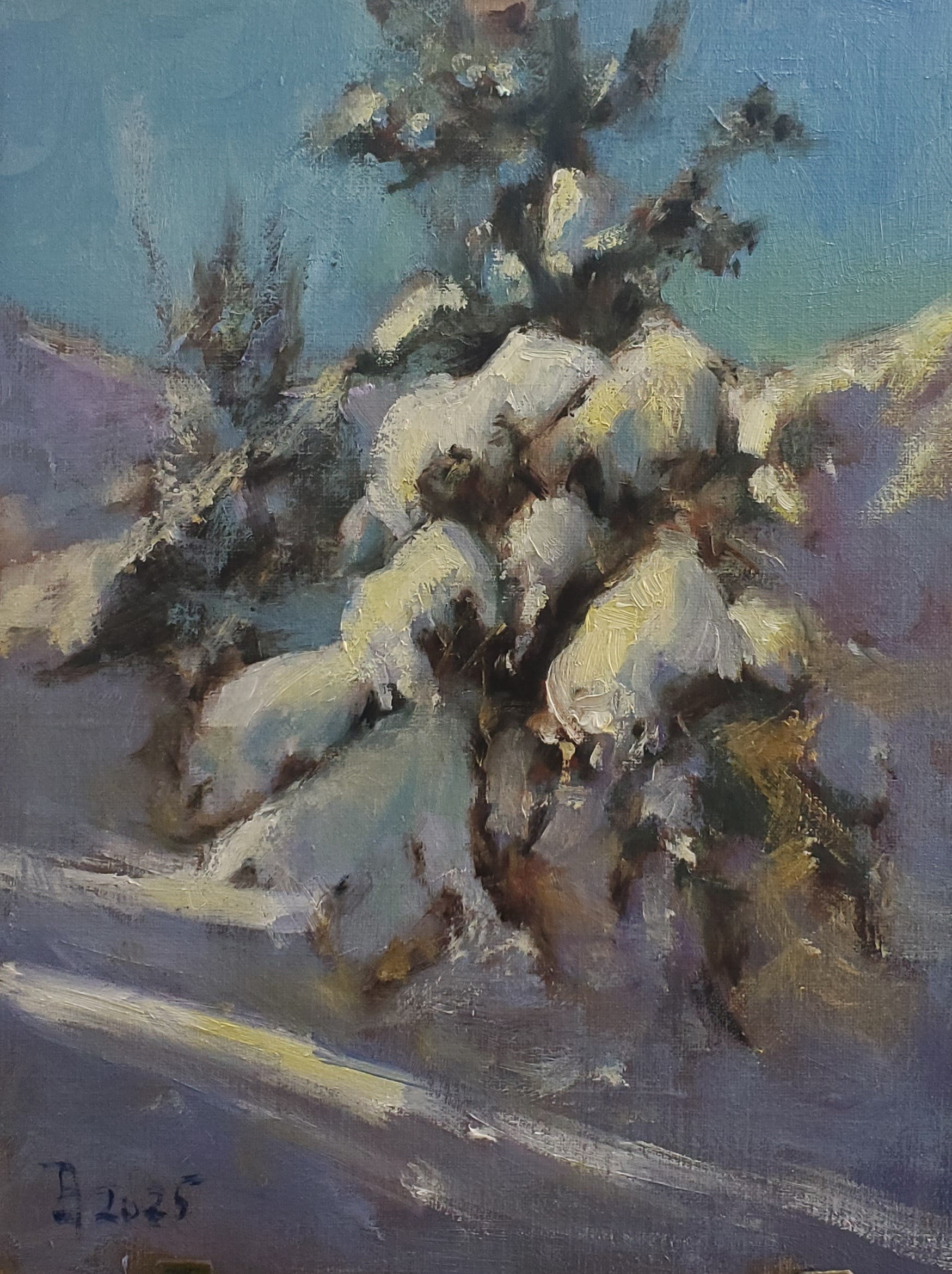 Œuvre du jour : Croquis dans la neige, huile sur panneau, 9 x 12 pouces.