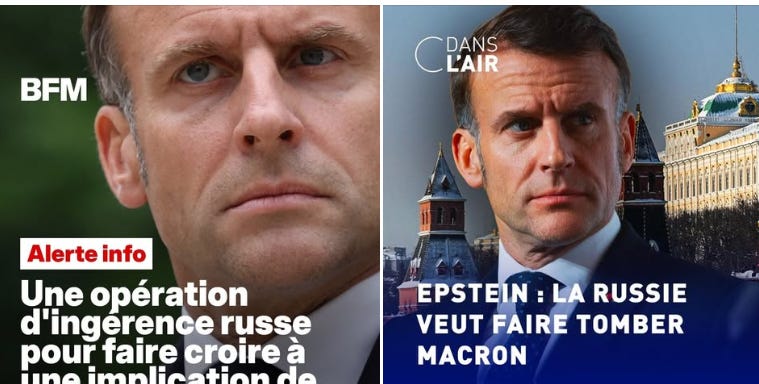 Coucou les amis magistrats. Vous êtes vraiment sympas. On est sûr que dans la comédie du pouvoir vous allez jouer vaillamment votre partition. Bon, celle-ci n’est jamais très originale. Un coup de sifflet bref et vous démarrez au quart de tour.Attention, là je ne parle pas de tous les magistrats évidemment, mais du PNF, vous savez l’officine créée par François Hollande au moment de l’affaire Cahuzac pour protéger ses amis et le système mis en place par le PS, aujourd’hui dirigé par Macron. Là le coup de sifflet bref c’est Mediapart qui l’a donné, vous savez Mediapart le petit parquet privé fondé par Plenel, et qui travaille à la commande. Dès hier on avait compris, devant l’ampleur du scandale Epstein, qui implique une bonne partie des « élites françaises », les deux consignes données par les patrons. D’abord, un bouc émissaire qu’on va copieusement massacrer pour donner le change. Ça tombe sur Jack Lang, caricature de la pourriture socialiste, qui devrait faire l’affaire. Ensuite on va remettre 100 balles dans le bastringue du « célérusses » et lancer une diversion géante, avec les médias du service public en première ligne, accompagnés en second rideau de la presse oligarchique subventionnée. Histoire de corser le roman « d’Epstein complot russe », on va raconter que ledit complot (et mondial hein le complot faut pas croire) est dirigé contre le grand leader à nous qu’on a, le soleil dans notre cœur, le mari de Brigitte Macron. C’est grotesque, les moujiks le considèrent comme un pitre et sa nullité qui conduit la France à la ruine les arrange. Ils ne sont vraiment pas pressés qu’on en change. Mais c’est pas grave, ce baratin ça permet de mettre des belles photos de Macron en mode grand leader justement, les mâchoires serrées regardant l’horizon. Plus grotesque tu meurs.