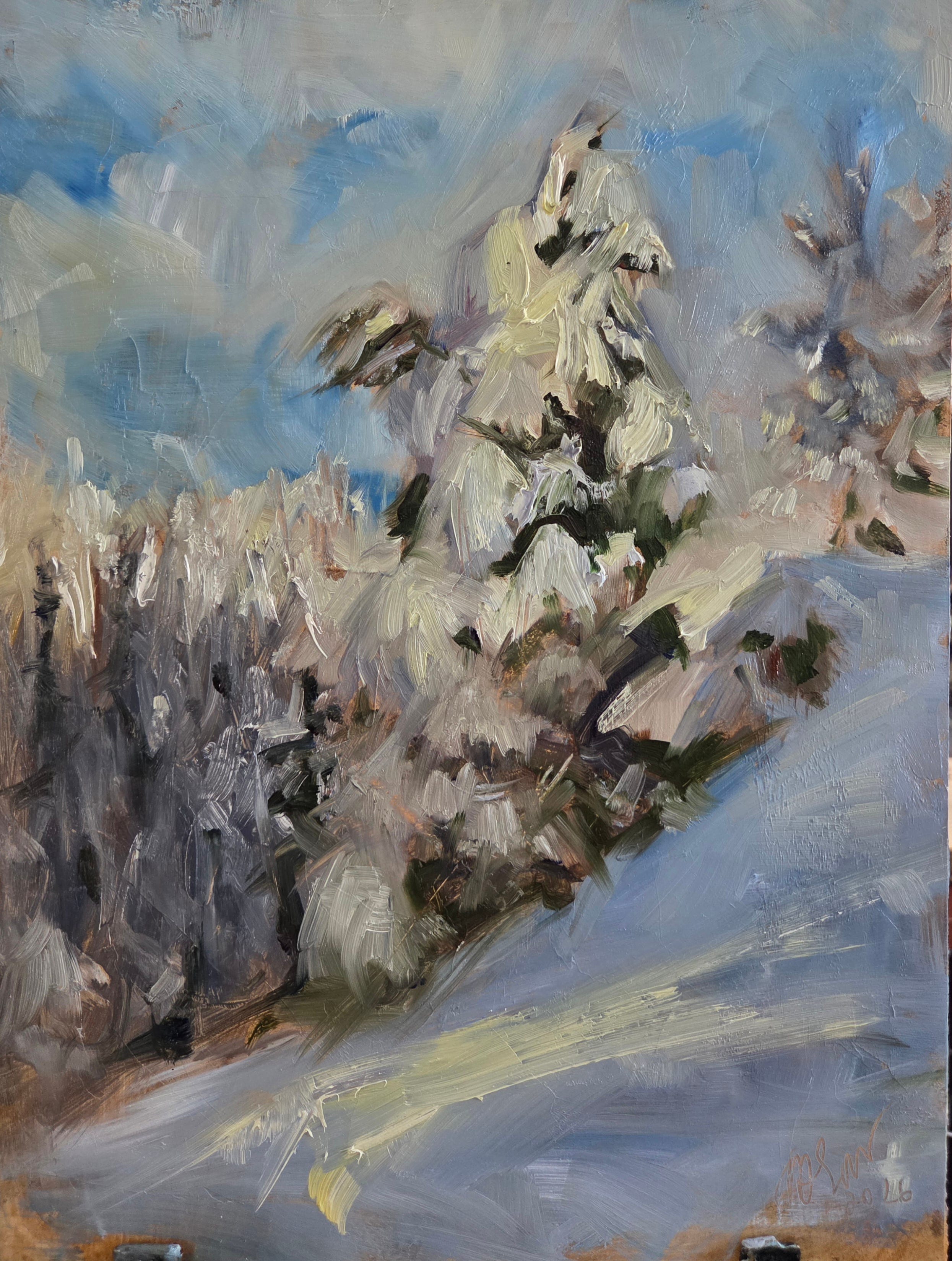 Œuvre d'art du jour : Rêves d'hiver, huile sur panneau, 9 x 12 pouces.