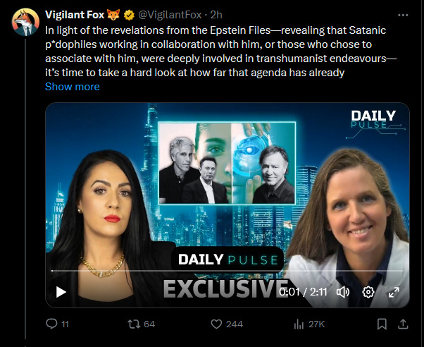 J'ai eu le grand plaisir de m'entretenir avec Maria Zeee. Nous avons réalisé de nombreuses interviews au fil des ans et, compte tenu des liens entre Epstein et le transhumanisme, nous avons eu une excellente conversation de suivi :