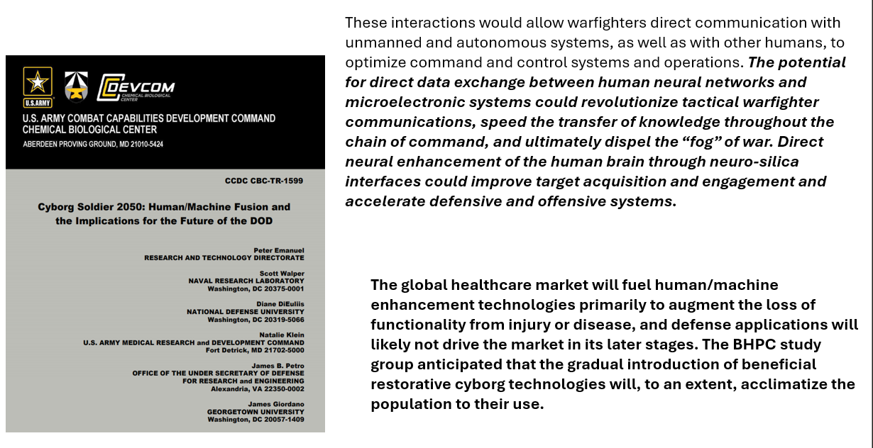 Rappelons que l'armée a évoqué le fait que c'est le marché des soins de santé qui fera progresser les technologies cyborg :