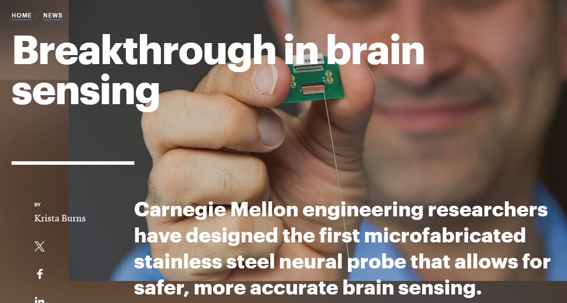 L'université Carnegie Mellon est également pionnière dans le domaine des sondes neuronales en acier inoxydable. Je vous rappelle que la nanopathologiste Antonietta Gatti a trouvé des fragments d'acier dans des vaccins infantiles. Que font-ils là ?