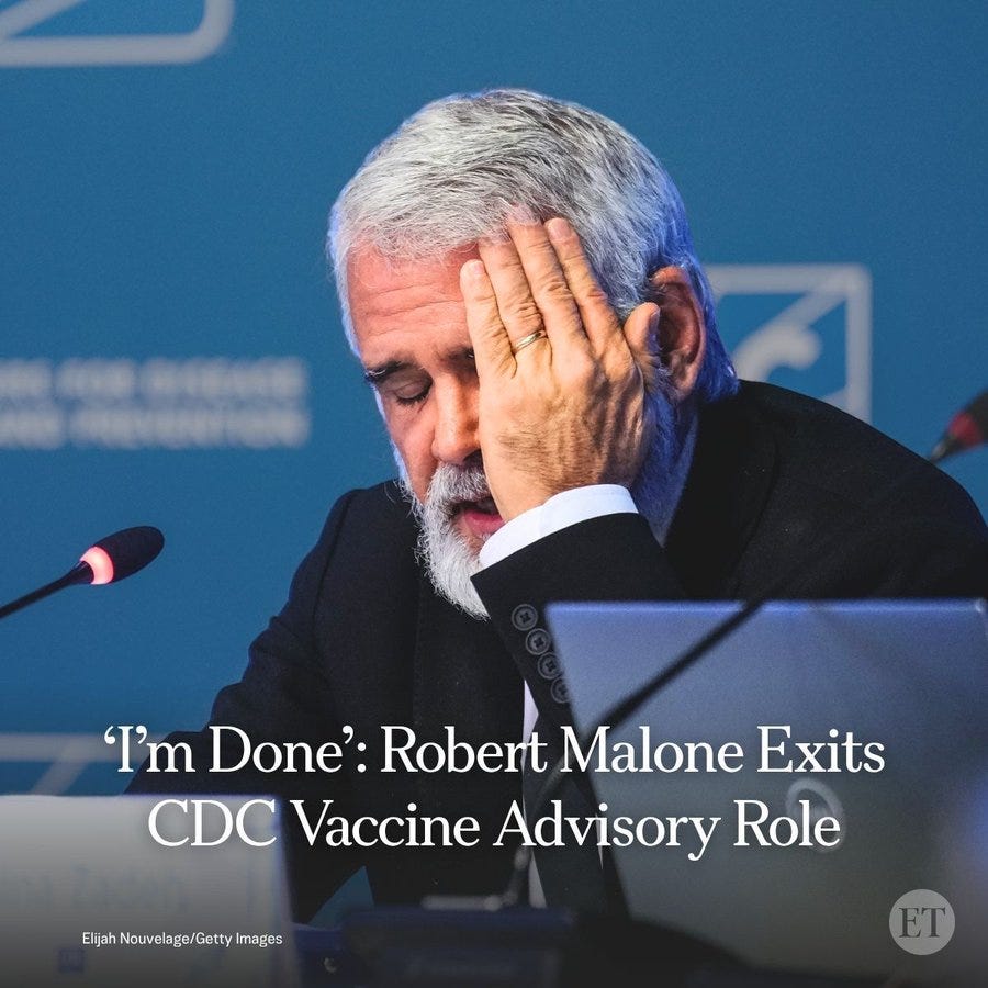 La mission de Bob Malone en tant que faux « lanceur d'alerte et chef antivax de MAHA » semble terminée. Les rats sont les premiers à quitter le navire qui coule (qu'ils ont d'ailleurs saboté). Il n'est pas surprenant que Bob Malone ait été aperçu en train de s'enfuir de l'ACIP en hurlant de façon théâtrale !