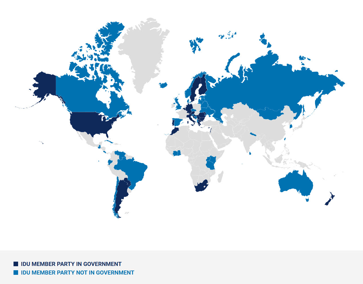 L'IDU a été fondée en 1983, en pleine guerre froide, en tant qu'alliance mondiale de partis politiques de centre-droit et conservateurs. Parmi ses membres fondateurs figuraient des partis dirigés par Ronald Reagan, Margaret Thatcher, Helmut Kohl et Jacques Chirac.