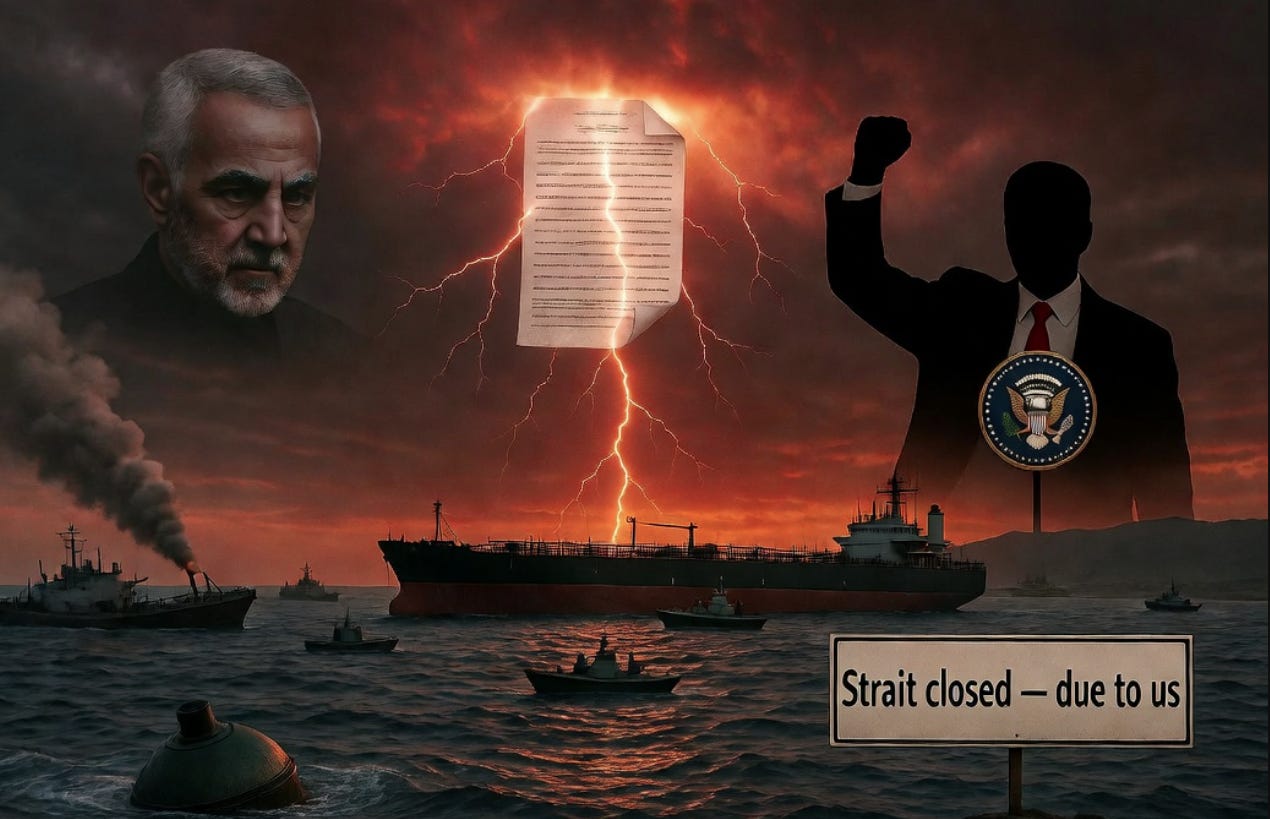 Puis, sous la houlette d'un fou furieux (Trump), les États-Unis ont assassiné Qassem Soleimani, intensifié les sanctions jusqu'à l'asphyxie économique et provoqué l'Iran. Ce qu'il a fait : miner des pétroliers, saisir des navires et transformer le détroit le plus stratégique au monde en zone de guerre navale. Le détroit s'est donc fermé. À cause de nous. À cause de l'arrogance de Trump.